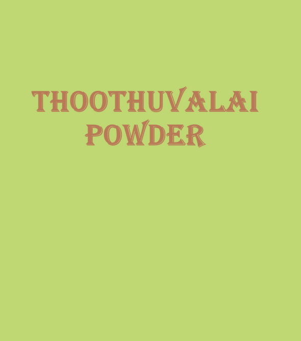 Boil 1 cup of water, then add 1/4 or 1/2 tsp of Thoothuvalai powder and mix. Add palm candy crystals or palm sugar for sweetness (optional). Let it steep for 5-10 minutes and strain (optional). Salt and pepper can be used for a savory drink.